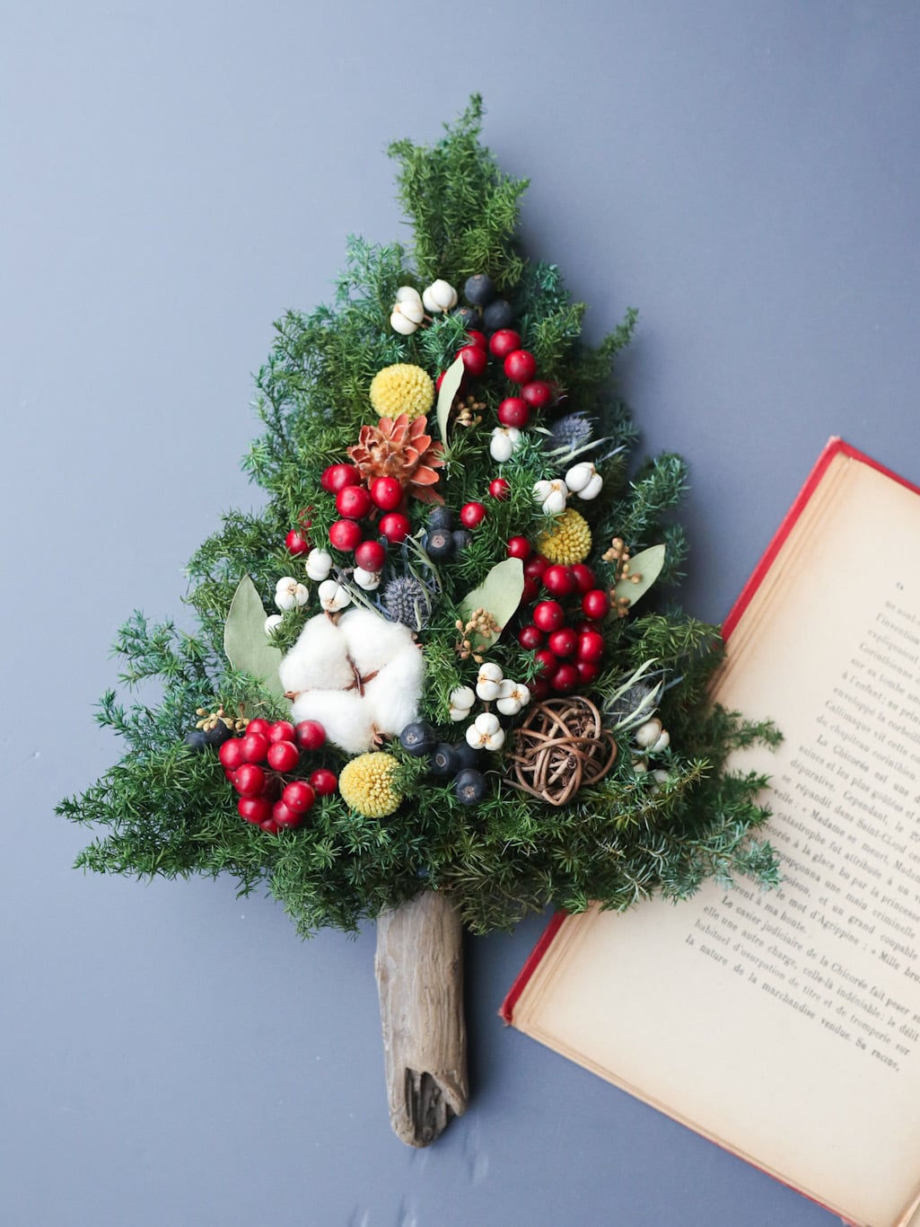 木の実もふんだんに使用し、幸せな気持ちでクリスマスが迎えられますようにと願って制作しました。