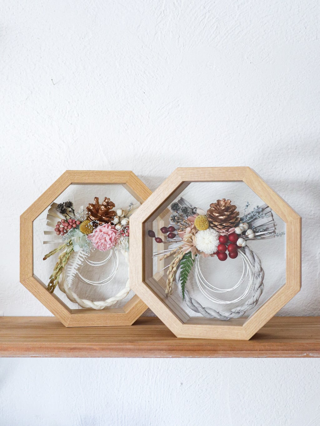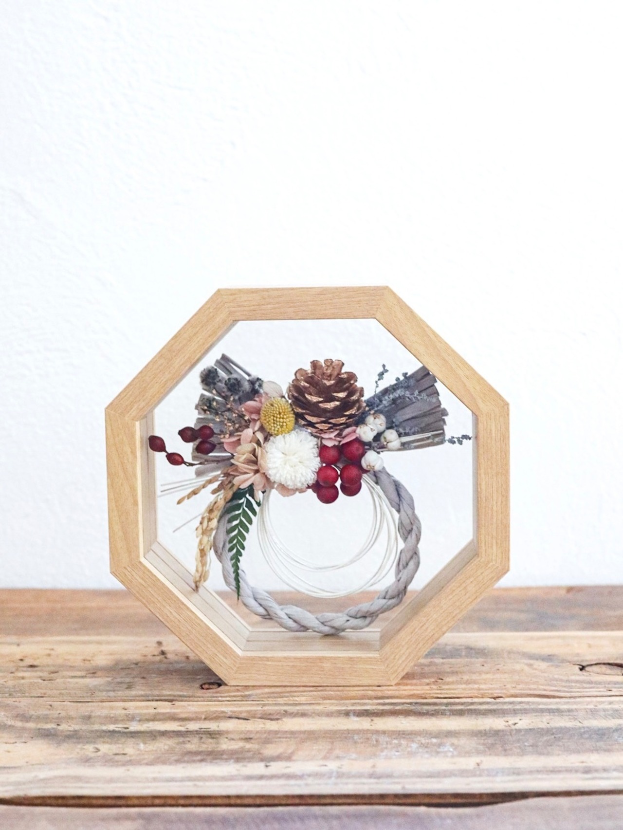 2, 木の実やプリザーブドフラワーを使用するなど、なるべく長持ちする素材でお作りしていますが、永遠のものではありません。色が薄くなるなど経年変化していくことをご了承ください。